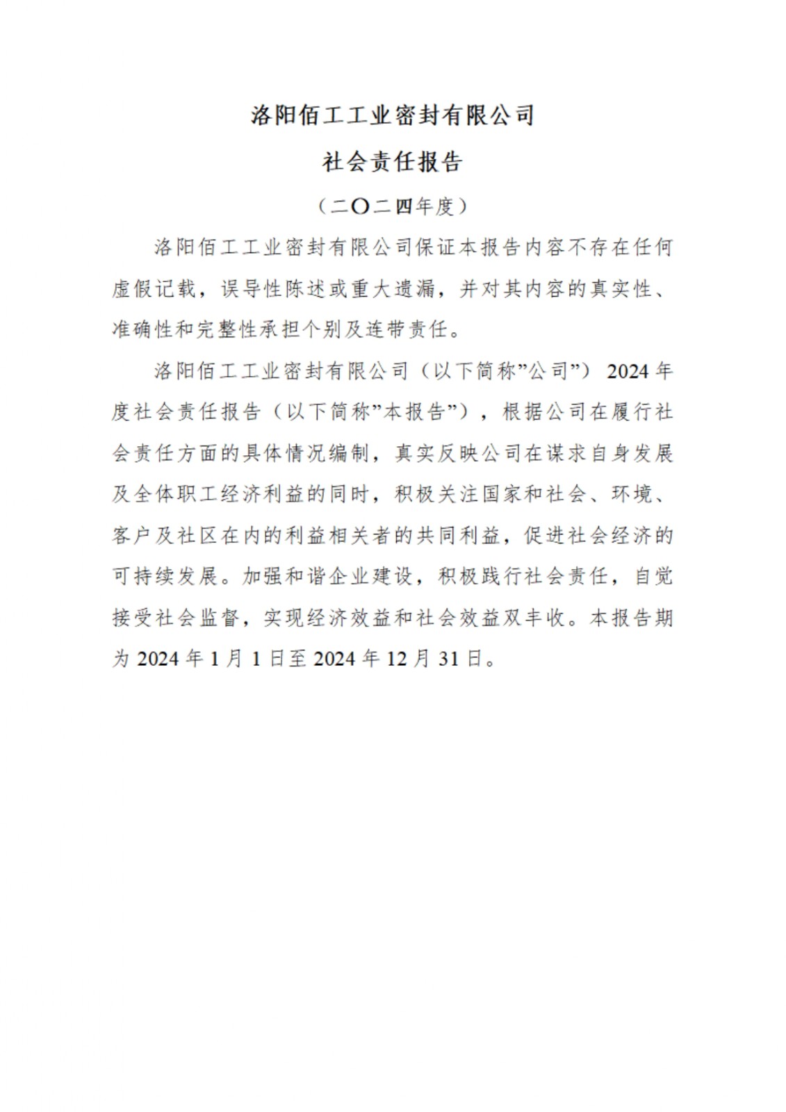 洛陽佰工工業(yè)密封有限公司社會責(zé)任報告-2024